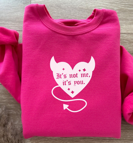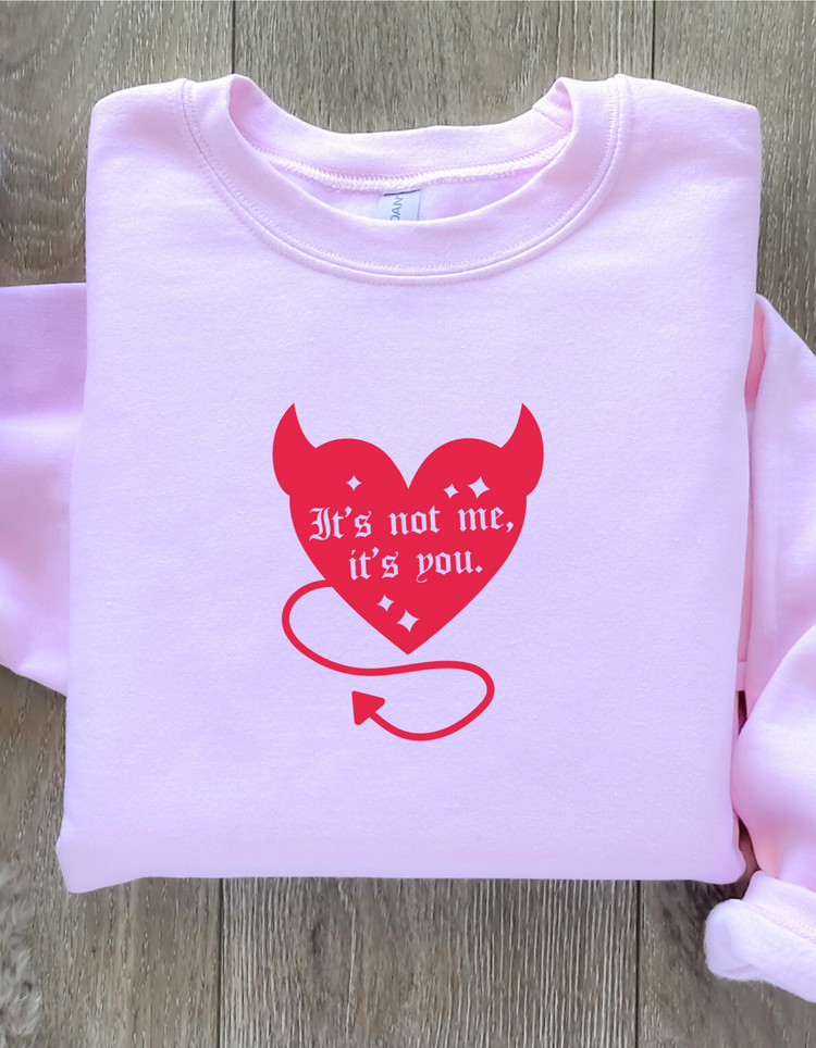 Funny Valentine's Day Sweatshirt It's Not Me It's You Devil Horn Heart Self Love Self Care Matters Mental Health Awareness Crewneck 2024