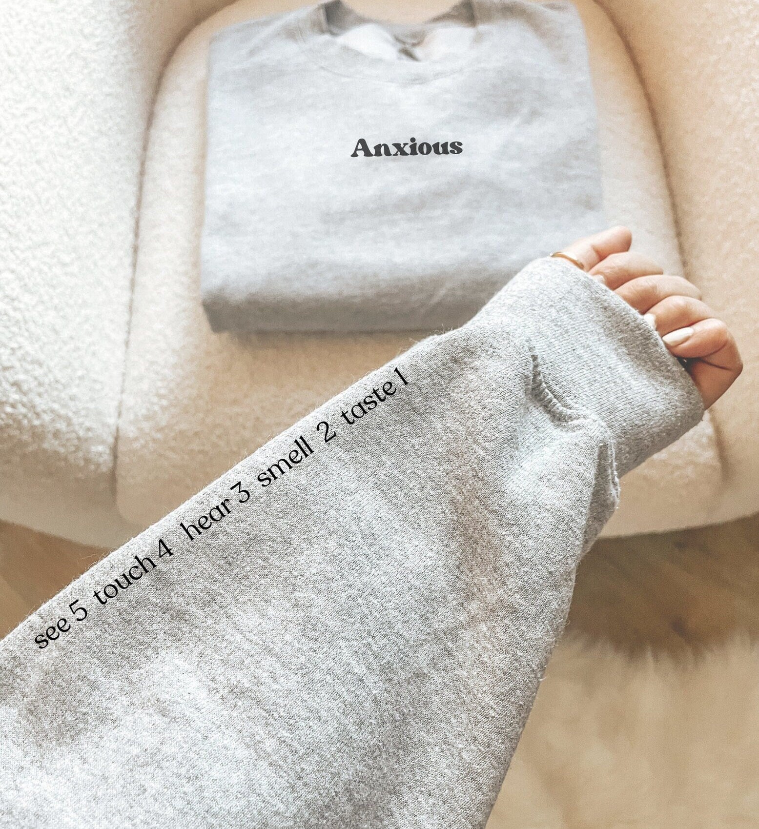 Anxious Sweatshirt + Grounding Technique 5 4 3 2 1 Sleeve