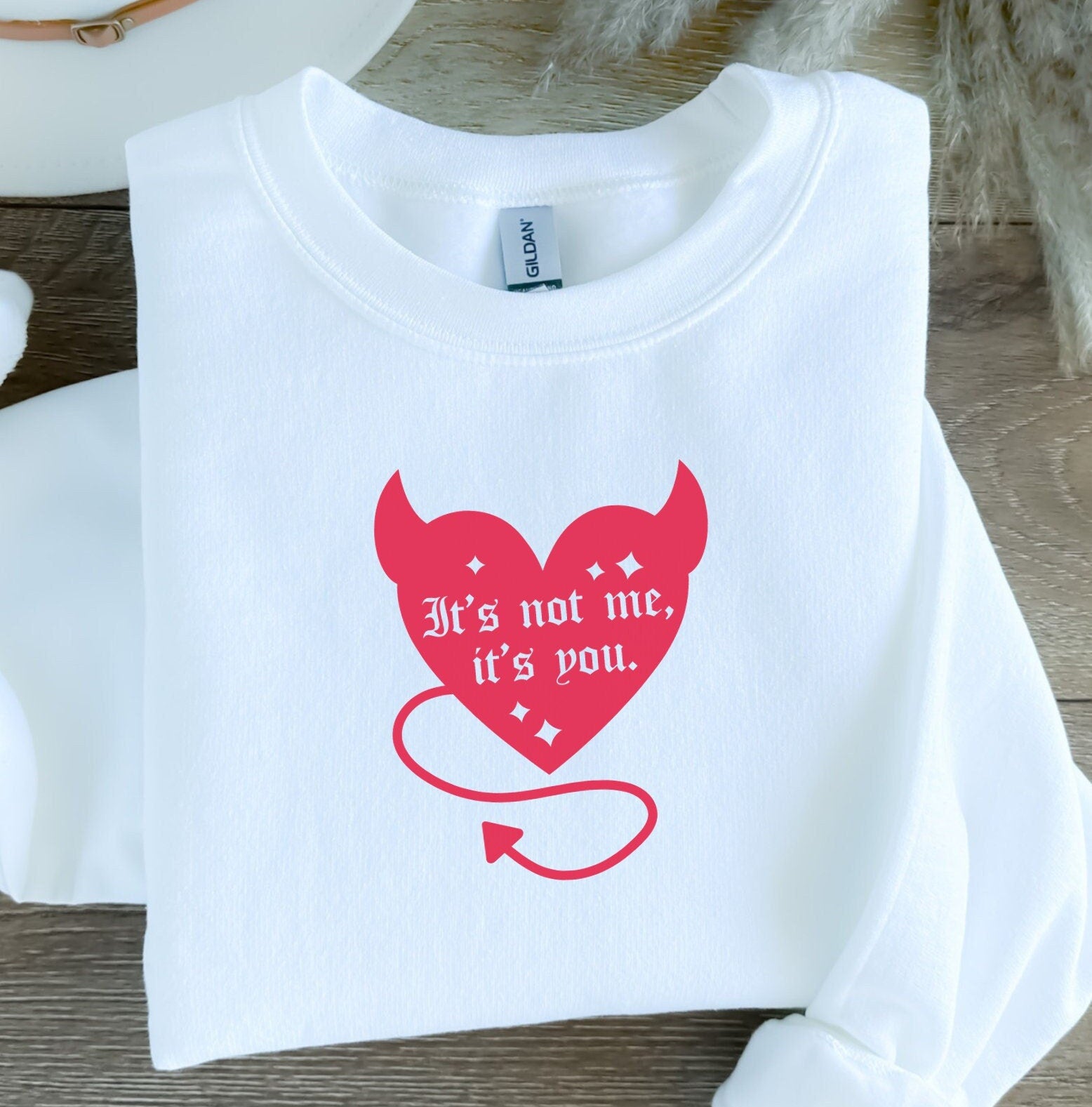 Funny Valentine's Day Sweatshirt It's Not Me It's You Devil Horn Heart Self Love Self Care Matters Mental Health Awareness Crewneck 2024
