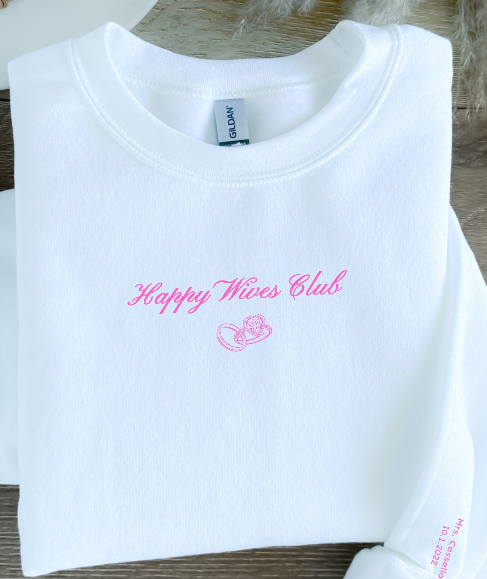 Personalized Name Happy Wives Club Sweatshirt | Custom Wedding Gifts Sleeve Design Wifey Crewneck Bride Bachelorette 2024