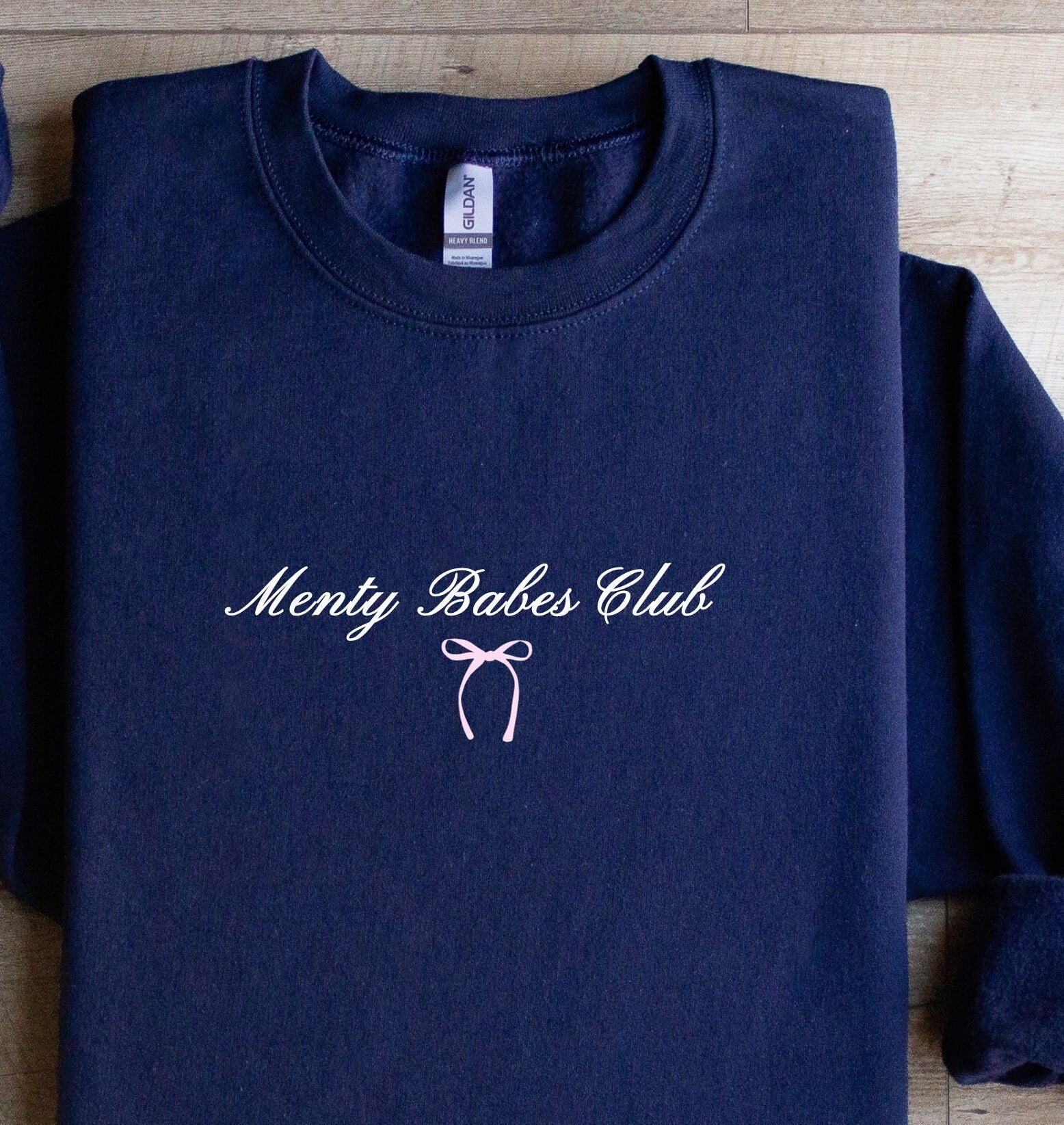 Vintage Style Menty Babes Club Bow Crewneck | Menty Tee Co Mental Health Awareness Merch New 2024 Trendy Simple Look